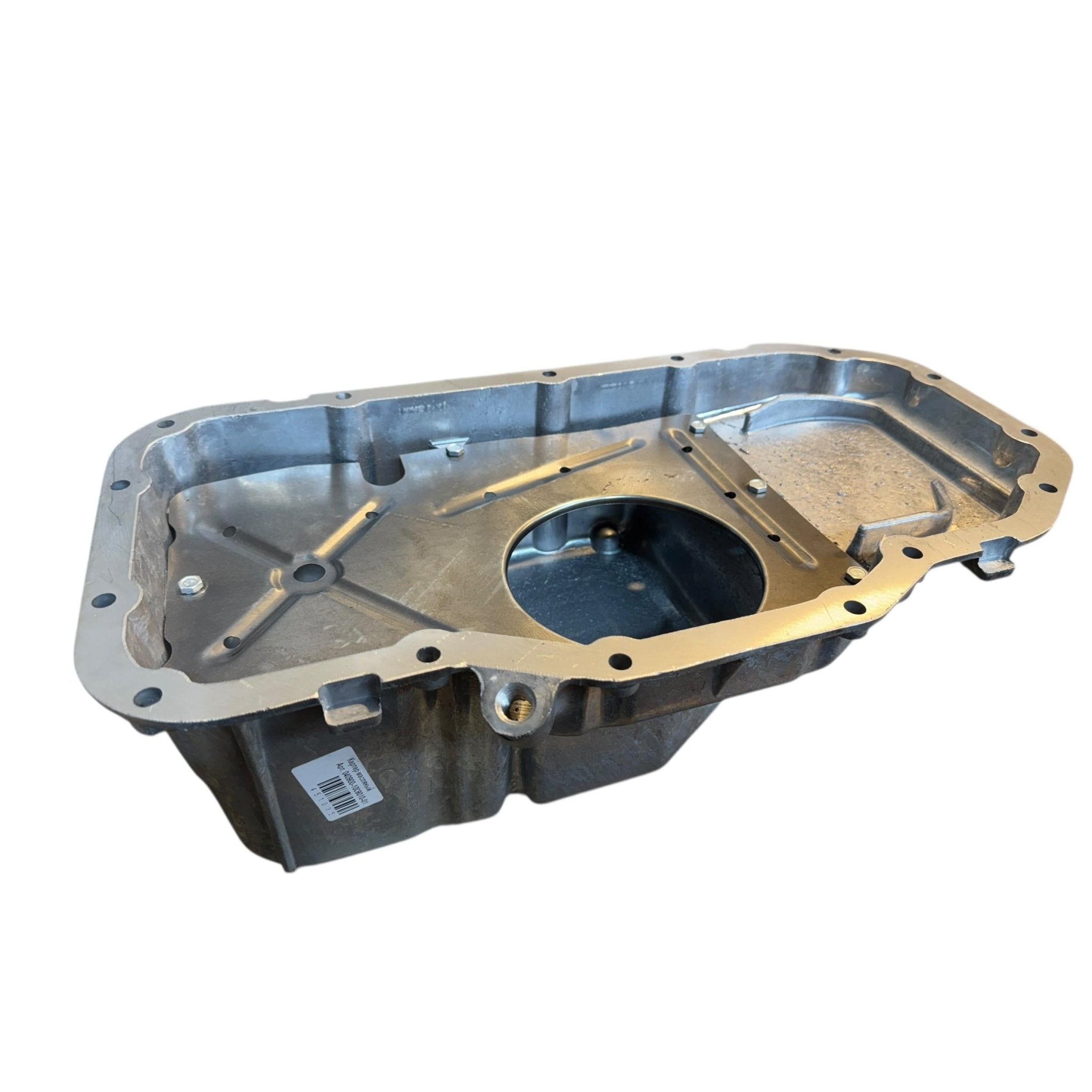 An OEM-standard sump pan guarantees the correct clearances and sealing surfaces for the ZMZ-409 engine. This prevents misalignment, ensures consistent oil circulation, and maintains the designed drain plug location. Its sturdy steel construction provides mechanical strength, resists deformation from impacts, and aids in oil cooling by dissipating heat.