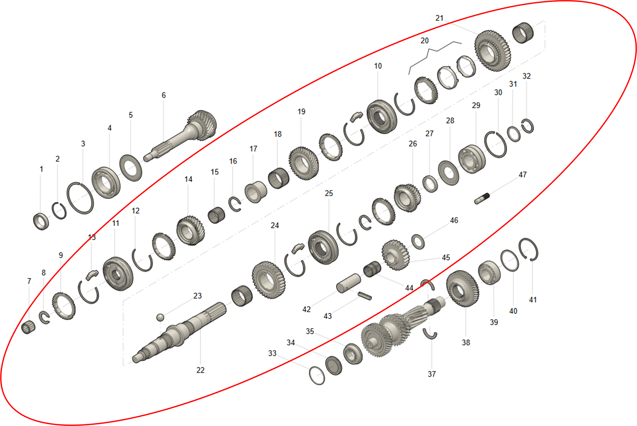 Choisissez cet ensemble si vous avez un sifflement d'engrenage, des débrayages intempestifs, du métal dans l'huile ou des dommages visibles sur les dents d'engrenage ou les arbres. Un ensemble interne neuf redonne des passages de vitesses précis et un fonctionnement fiable.